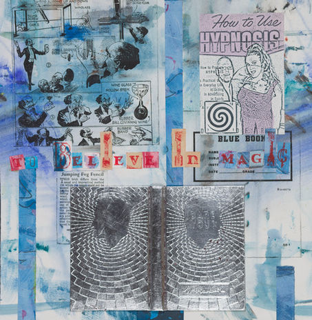 "I have always loved collage and mixed media. I like the freedom to use whatever it takes to tell the story - paper, paint, photography, fabric, or found objects. I hope my work takes the viewer beyond the sentimental, giving them a place to reflect and sometimes laugh at who and what we are as a society. Since childhood, I have been "pulled in" by the pulse of popular culture and the poetics of fine art. The lines between these two aspects of our culture are often blurred. Creating work that negotiates those ambiguous spaces is a challenging goal, and when the piece works, there is a real sense of accomplishment."